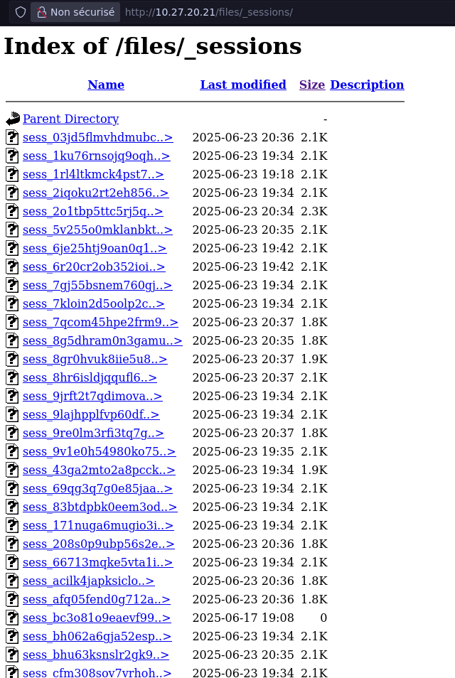 [-] No exploit compatible foundThe tool indicates that session files are publicly accessible at /files/_sessions: