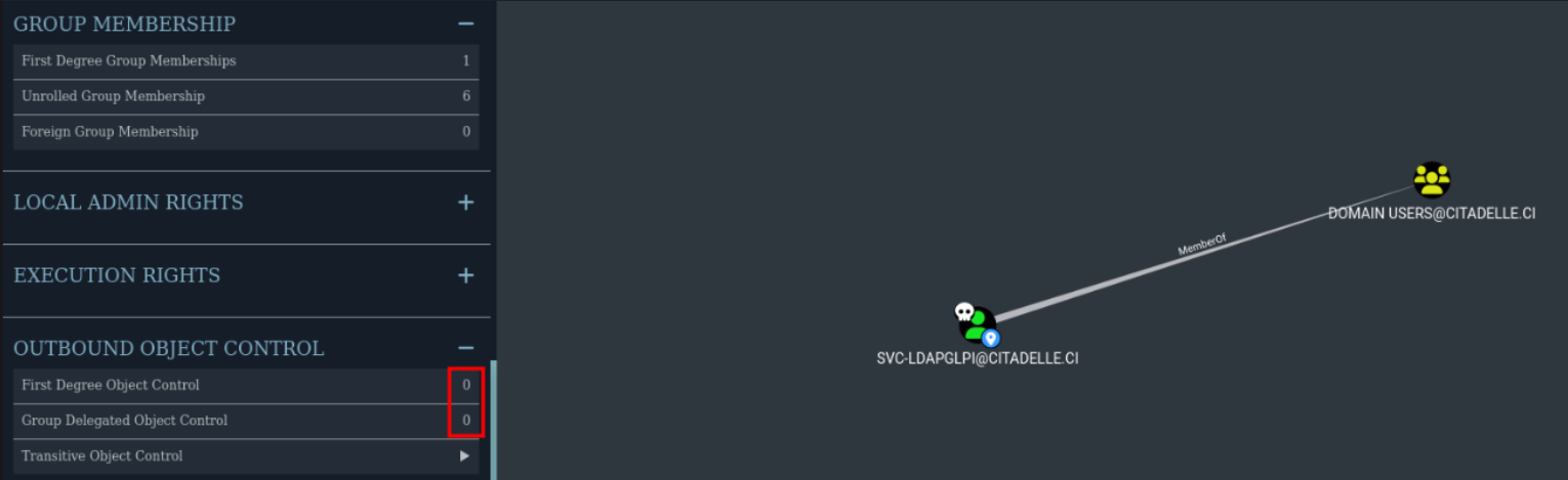 LDAP 10.27.20.20 389 CISRVPDC01 Compressing output into /root/.nxc/logs/CISRVPDC01_10.27.20.20_2025-06-23_231505_bloodhound.zipWe only had Domain Users membership, no interesting rights.