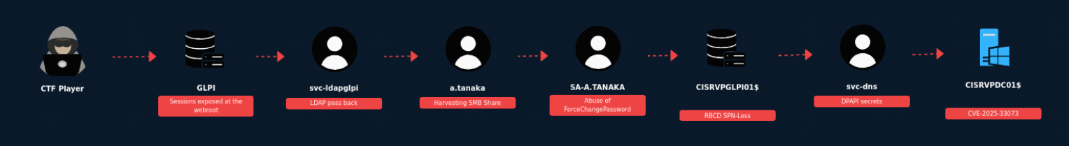 To wrap up, this was a very interesting lab combining Active Directory exploitation with attacks on third-party services like GLPI. I learned a lot about exploiting GLPI and got back into practice during the CTF, which set me up nicely to tackle the other Active Directory labs their write-ups will be published very soon.