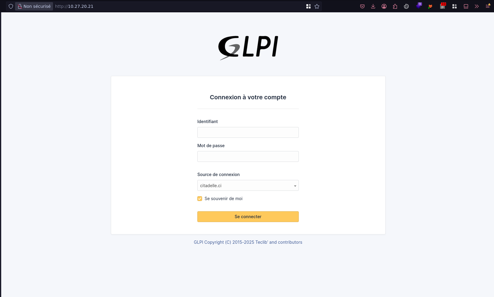 Browsing to http://10.27.20.21/ reveals a GLPI instance: