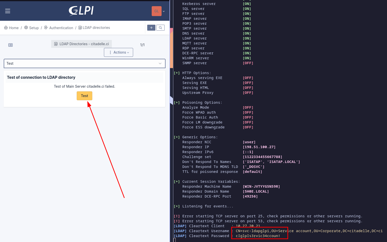 Initial access - GLPI+LDAP pass back (svc-ldapglpi)