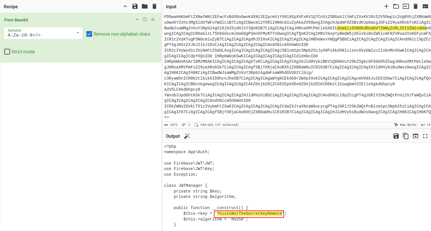 We decode it and get the secret key: