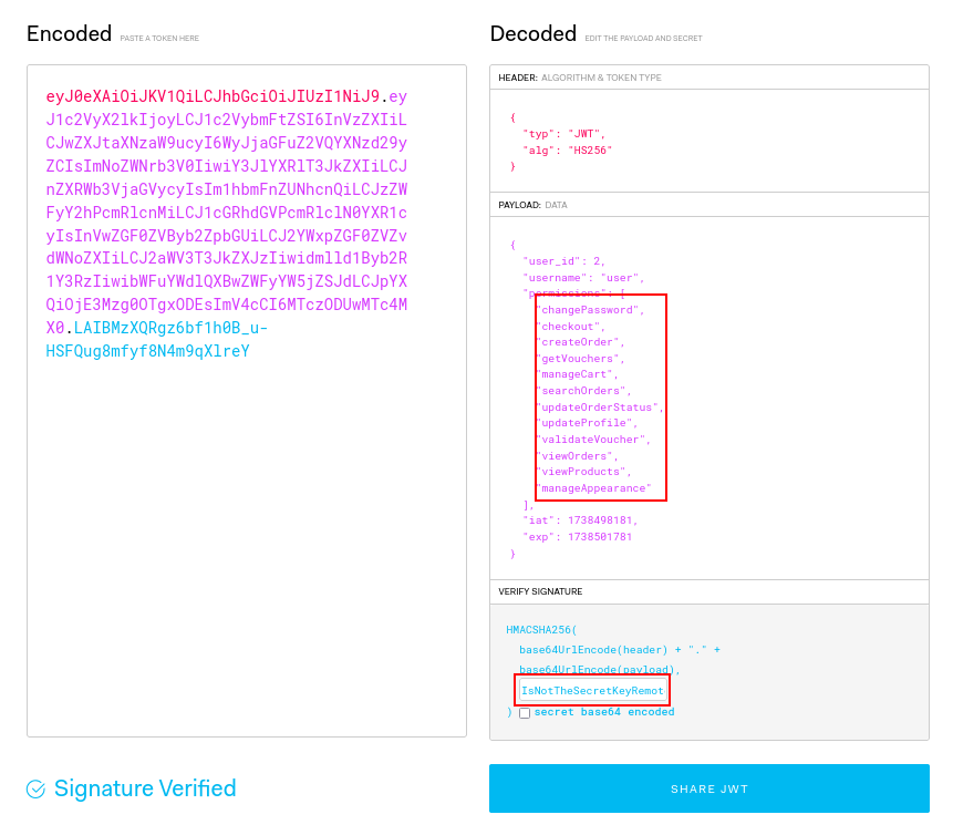 Now that we have the secret key, we can generate a valid JWT for the admin user: